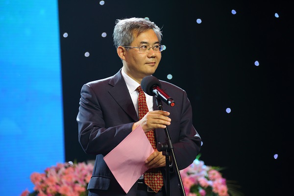 中国高等教育学会副会长兼秘书长康凯为特等奖获得者颁奖