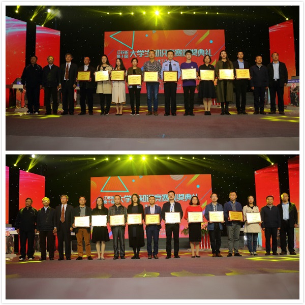 江苏省教育厅副巡视员袁靖宇、江苏省高等教育学会会长丁晓昌、南京师范大学教授吴锦为学生一等奖前3名获得者颁奖。